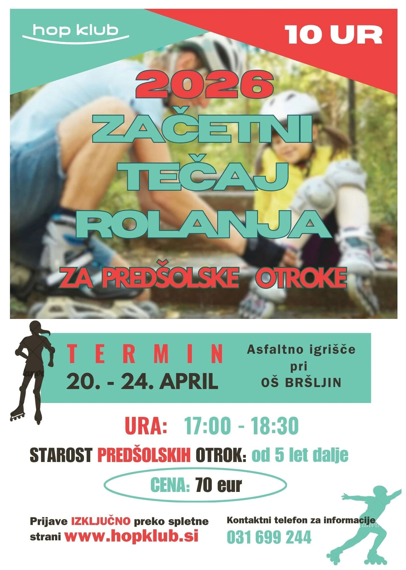 Začetek tečaja rolanja za predšolske otroke smo zaradi dežja premaknili na sredo, 22.4.2026!
